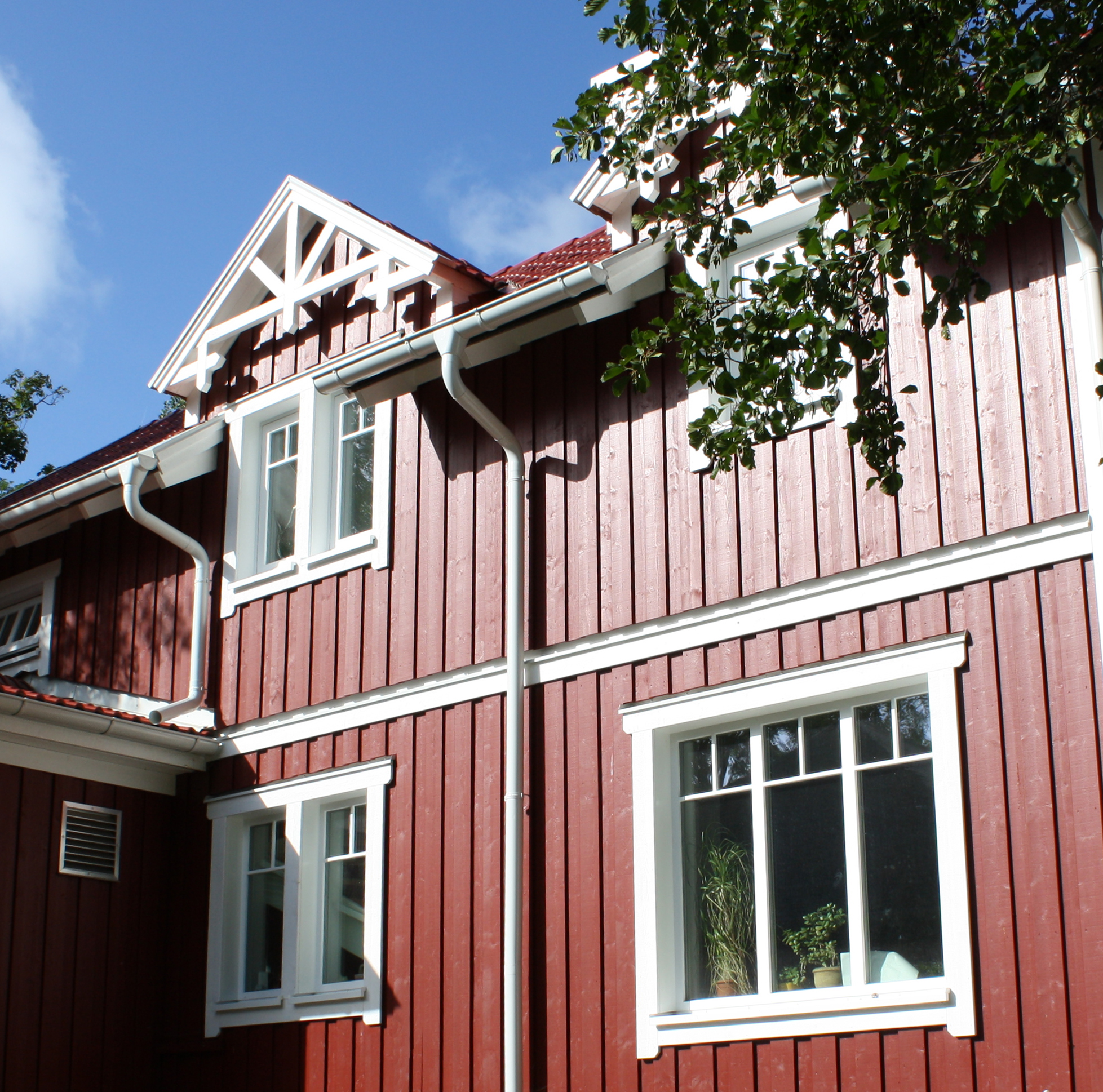 In Brandenburg entstand ein charmantes Holzhaus mit 155 Quadratmetern Wohnfläche, das ganz im Stil eines klassischen Schwedenhauses errichtet wurde. Die Fassade erstrahlt im typischen Schwedenrot und wird durch weiße Dekorbetten akzentuiert, wodurch das Gebäude seinen unverwechselbaren, freundlichen Charakter erhält.