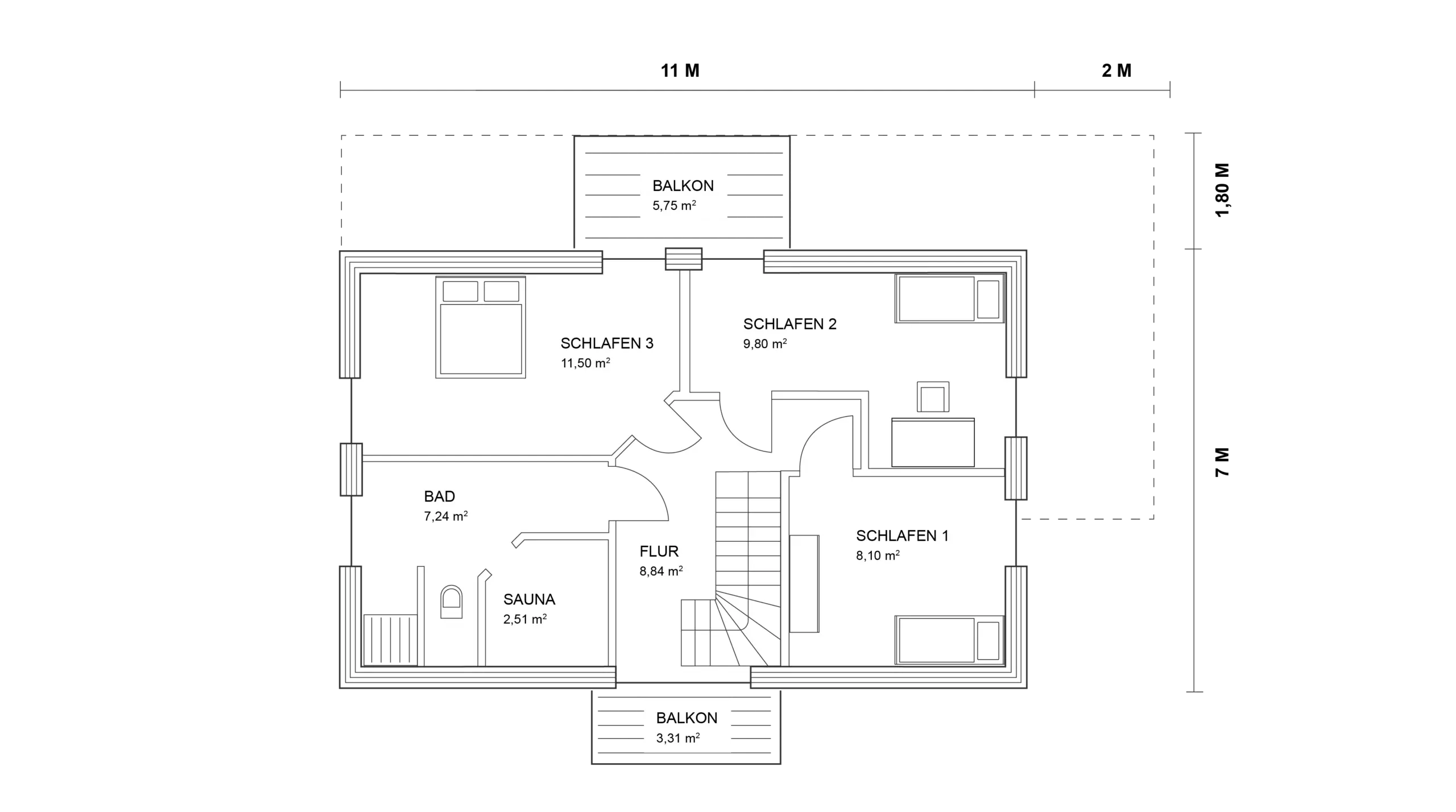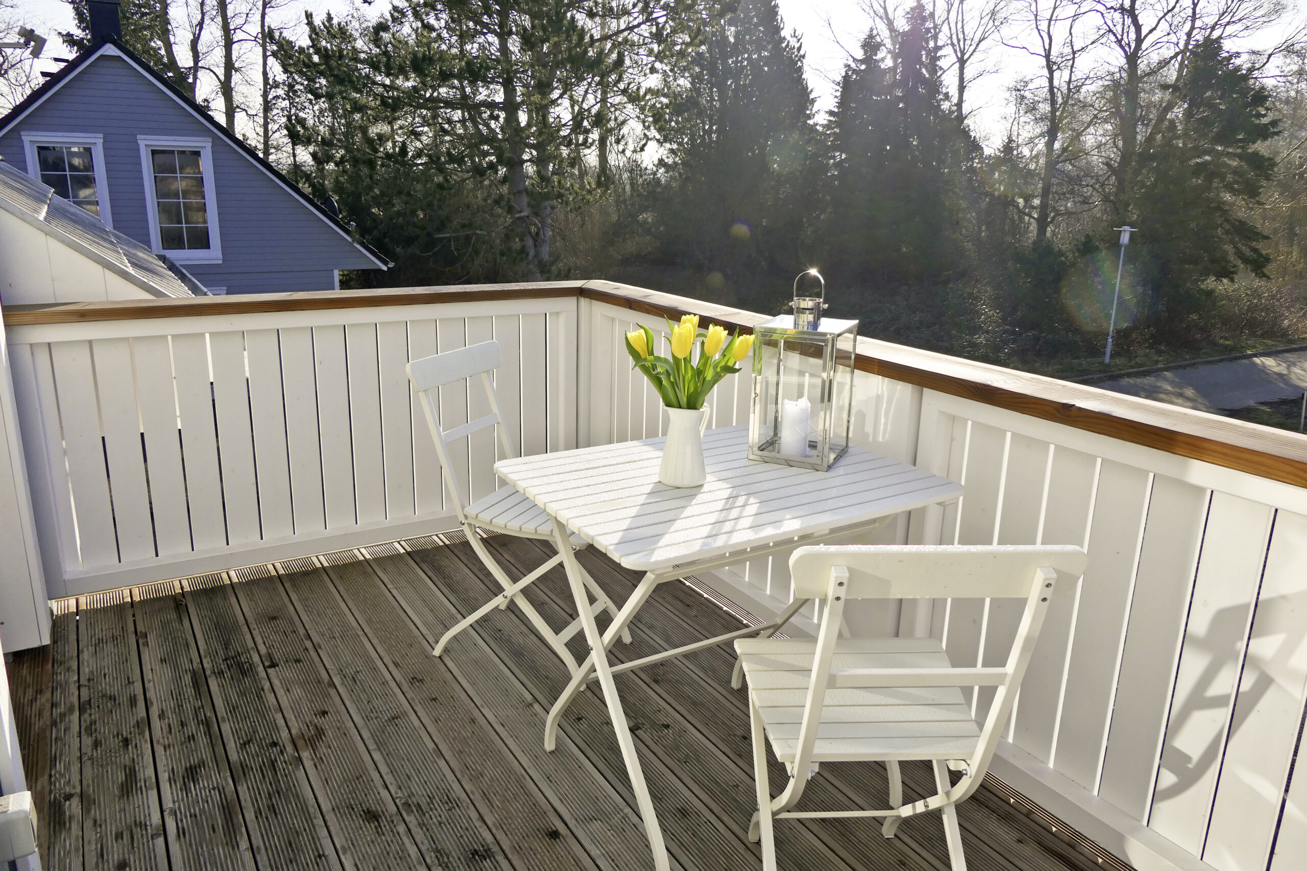 Ein besonderes Highlight bilden die Balkone aus Lärche mit geriffelter Diele: Sie laden zum Verweilen ein und unterstreichen den natürlichen, hochwertigen Gesamteindruck des Hauses.